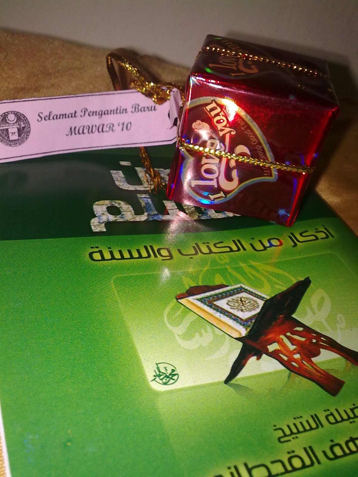 syukran awi untuk coklat yang sedap & buku doadoa harian tersebut! :D insyaAllah amat2 berfaedah & berbaloi kalau bagi buku macam tu. kalau ramai yang manfaatkan & amalkan, biiznillah dapat pahala yang berterusan ..kan best camtu??heee~*so, majlis walimah kami nanti pun nak bagi benda2 camtu.hihi.boleh x?*